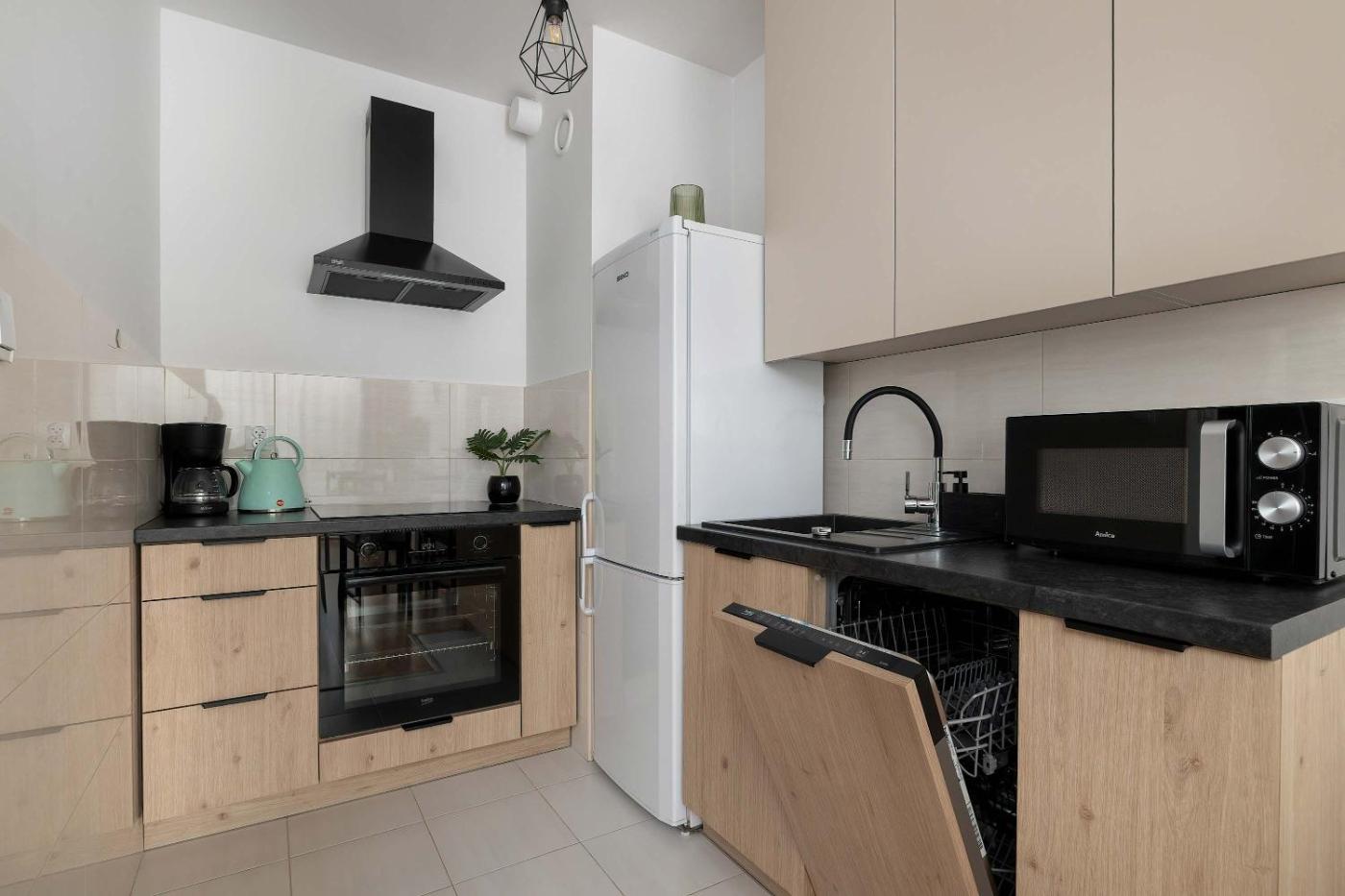 Apartament. Boasting a private entrance, this apartment comes with 1 living room, 1 separate bedroom and 1 bathroom with a bath and a hairdryer. Meals can be prepared in the kitchenette, which features a stovetop, a refrigerator, a dishwasher and kitchenware. This apartment has a washing machine, a tea and coffee maker, a flat-screen TV and a terrace. The unit has 2 beds. Apartament - 5 osobowy. Powierzchnia pokoju ok.: 35 mkw.