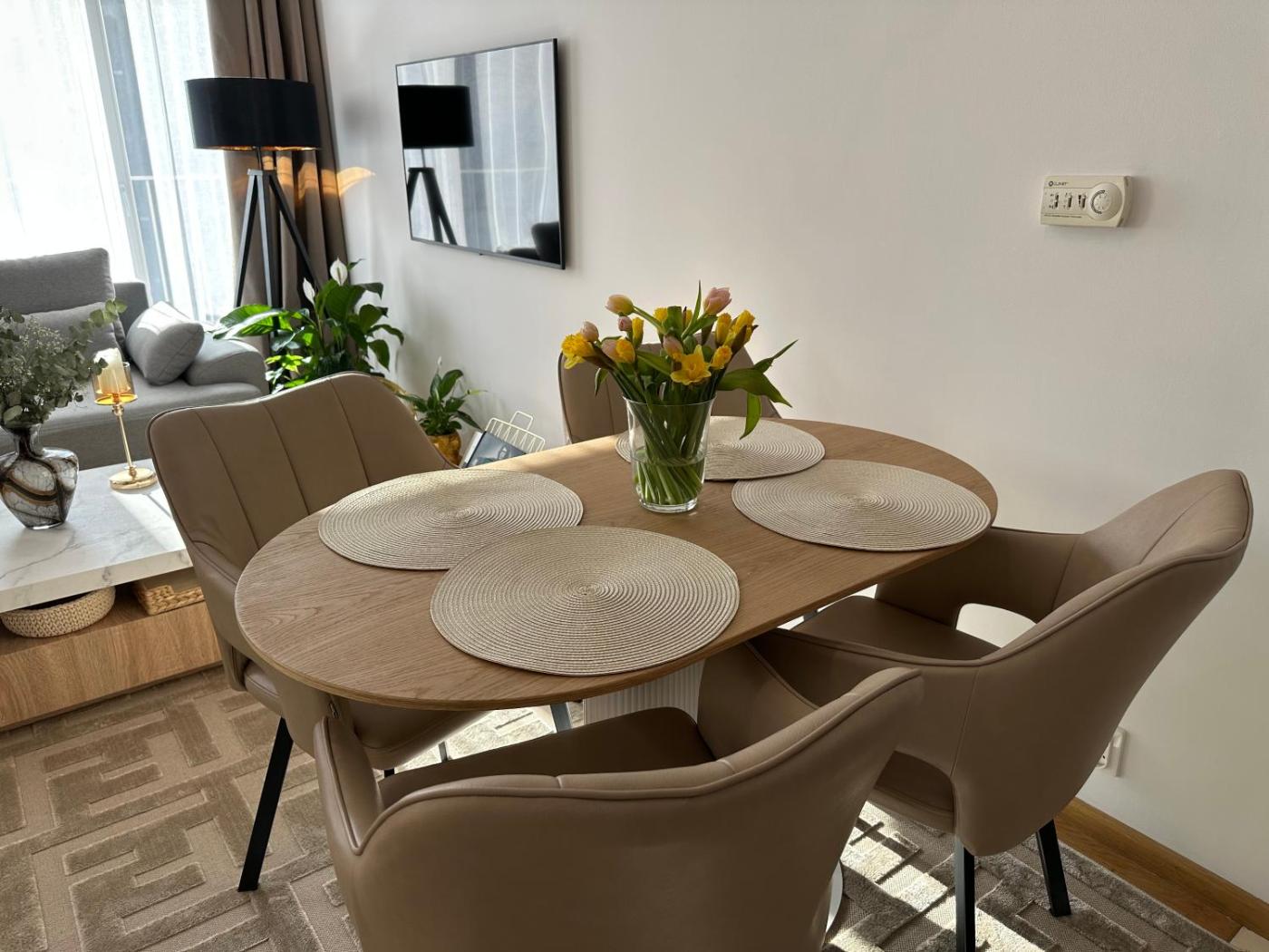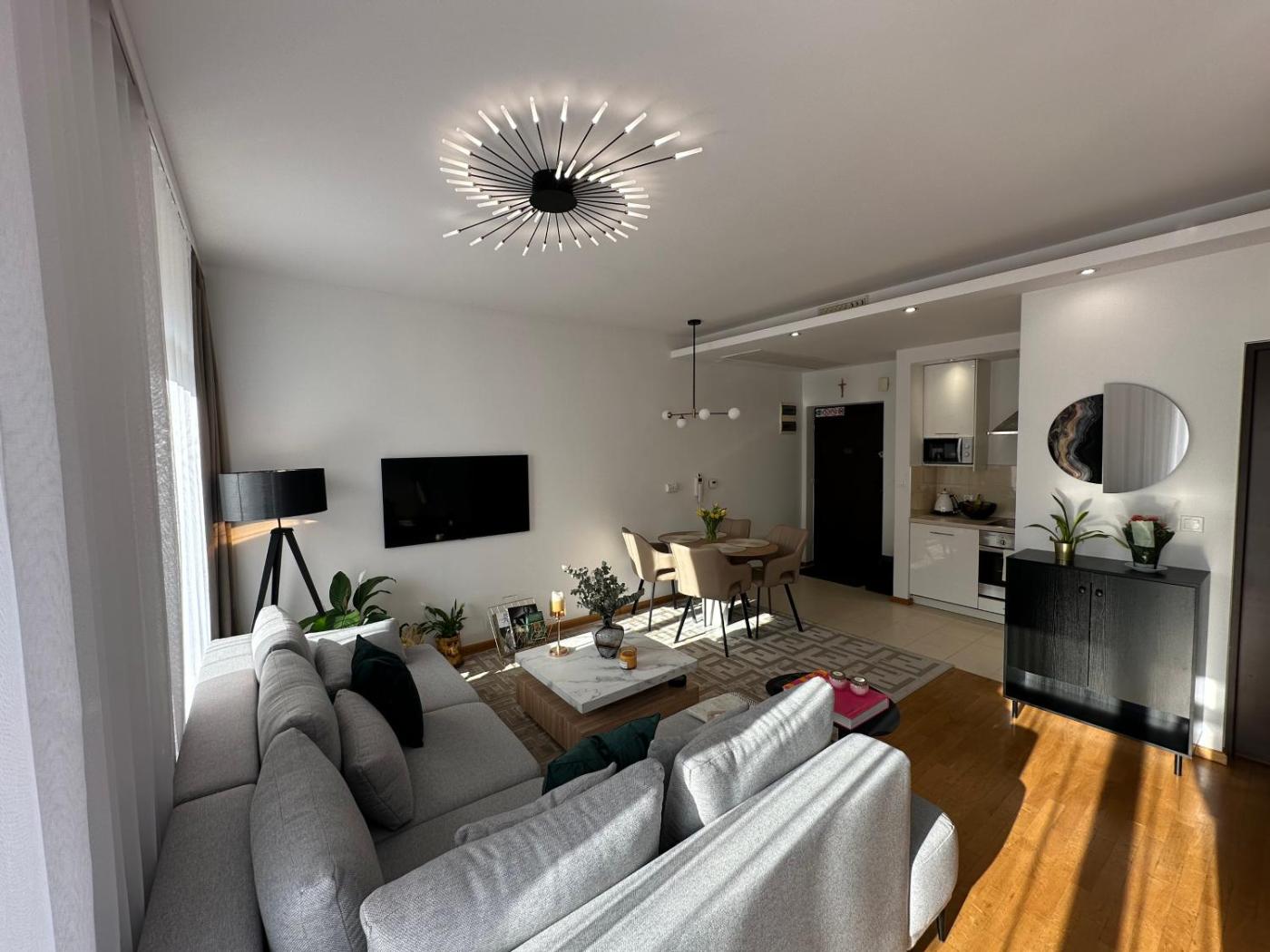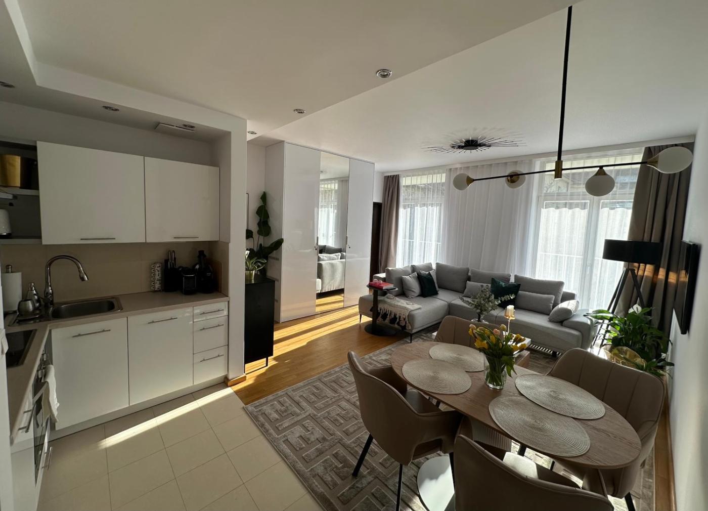 Apartament z 1 sypialnią. Meals can be prepared in the well-fitted kitchen, which comes with a stovetop, a refrigerator, a dishwasher and kitchenware. The air-conditioned apartment provides a flat-screen TV with streaming services, a washing machine, a private entrance, a tea and coffee maker as well as garden views. The unit offers 2 beds. Apartament - 4 osobowy. Powierzchnia pokoju ok.: 45 mkw.